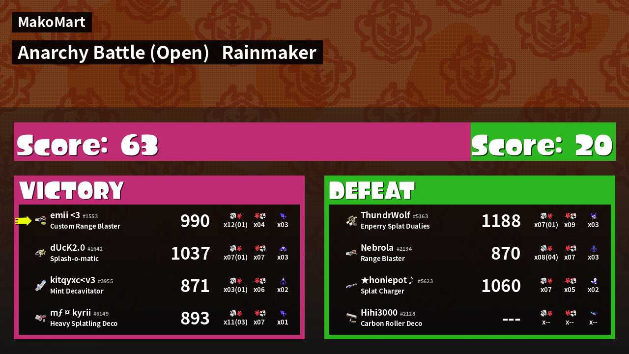 | Mode | Rainmaker - Anarchy Battle (Open) | ||