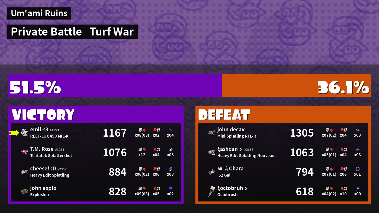 Kills / Deaths | 5 + 3 / 2 > Kill Ratio: 2.50 | ||