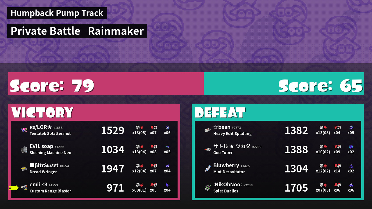 | Medals | #1 Ground Traveler #1 Kraken Royale User #2 Enemy Splatter | ||
