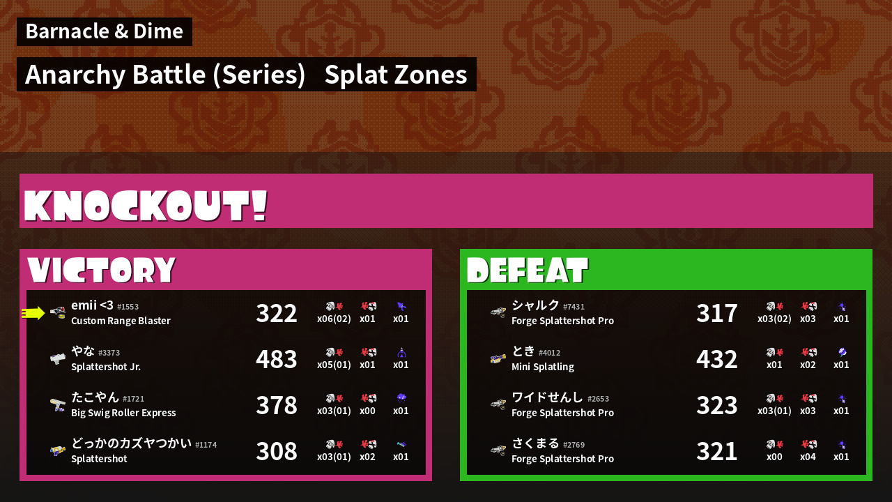 | Mode | Splat Zones - Anarchy Battle (Series) | ||