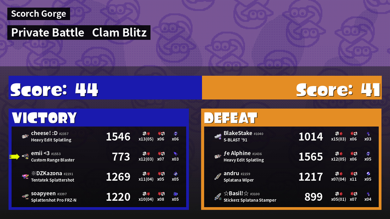 | Zesty Bro  cheese! :D #2357 |  Heavy Edit Splatling                    | 1,546 | 8 + 5 | 6 | 1.33 |  6 | |