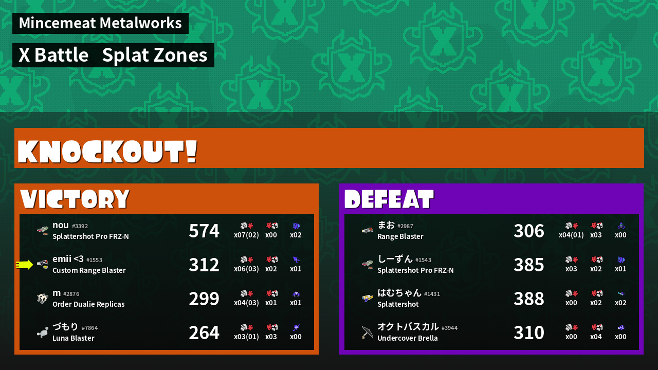 | Mode | Splat Zones - X Battle | ||