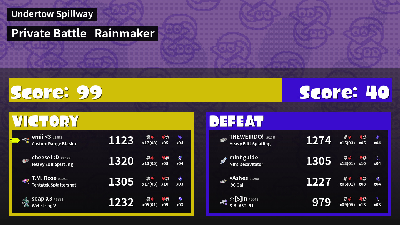 | Medals | #1 Overall Splatter #1 Popular Target #1 Splat Assister | ||
