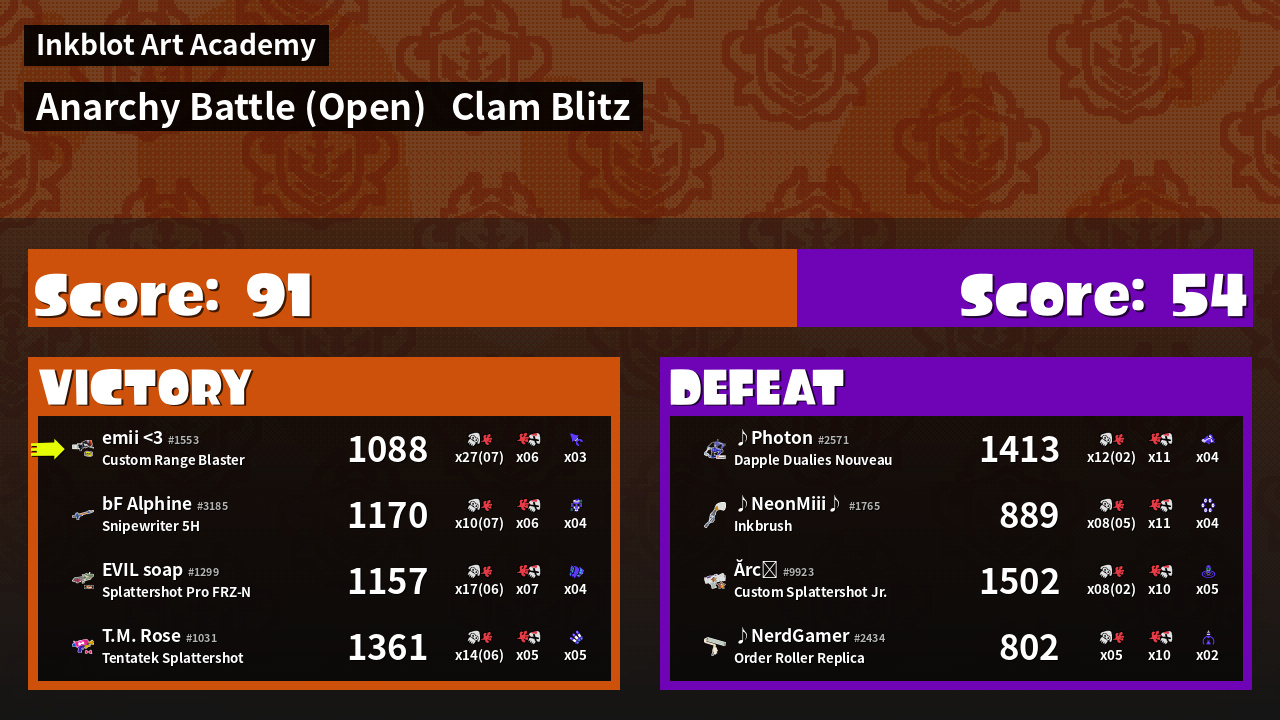 | Mode | Clam Blitz - Anarchy Battle (Open) | ||