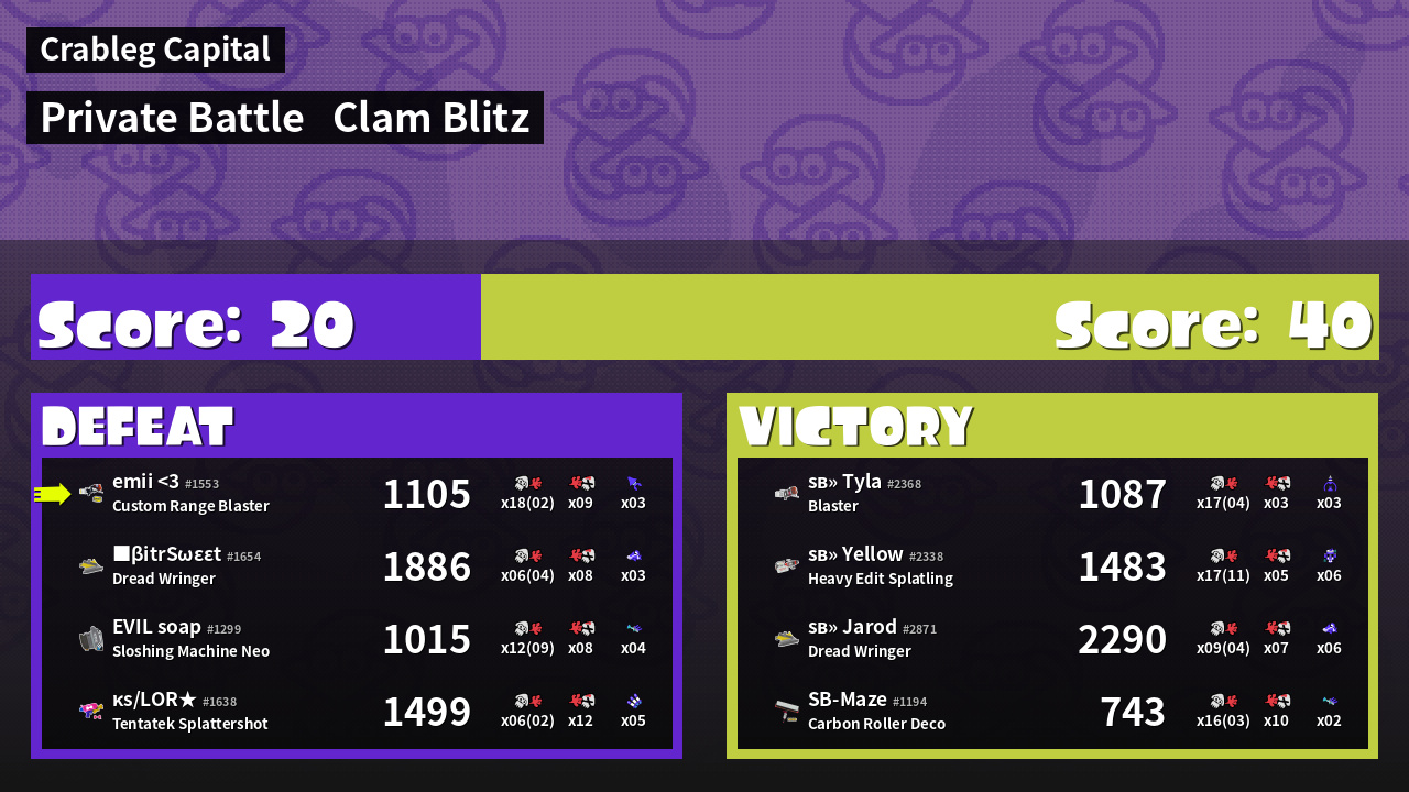 | Weapon | Custom Range Blaster ( Splat Bomb / Kraken Royale) | ||