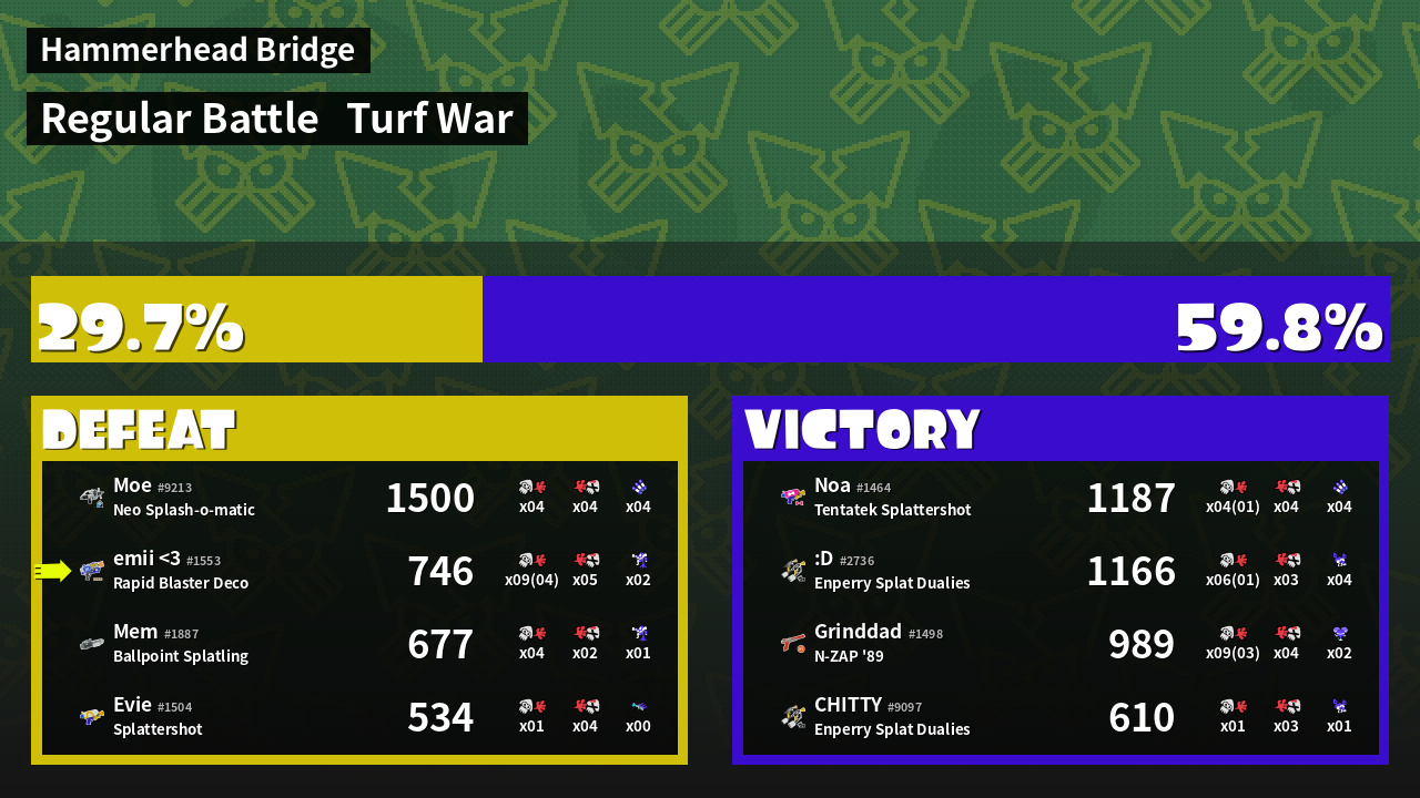Kills / Deaths | 5 + 4 / 5 = Kill Ratio: 1.00 | ||