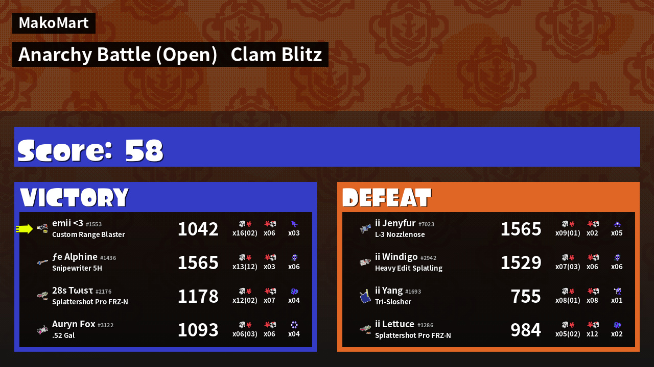 | Mode | Clam Blitz - Anarchy Battle (Open) | ||