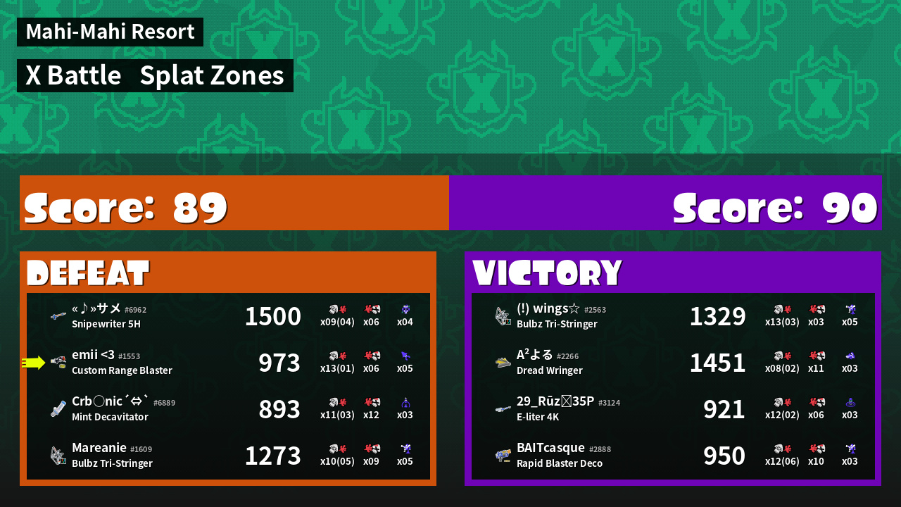 | Mode | Splat Zones - X Battle | ||