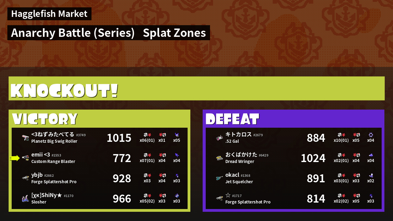 | Medals | #1 Overall Splatter #1 Enemy Splatter #2 Splat Zone Guard | ||