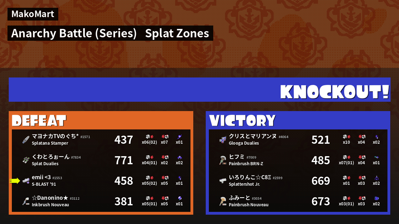 | Mode | Splat Zones - Anarchy Battle (Series) | ||
