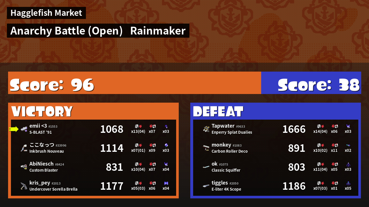 | Mode | Rainmaker - Anarchy Battle (Open) | ||