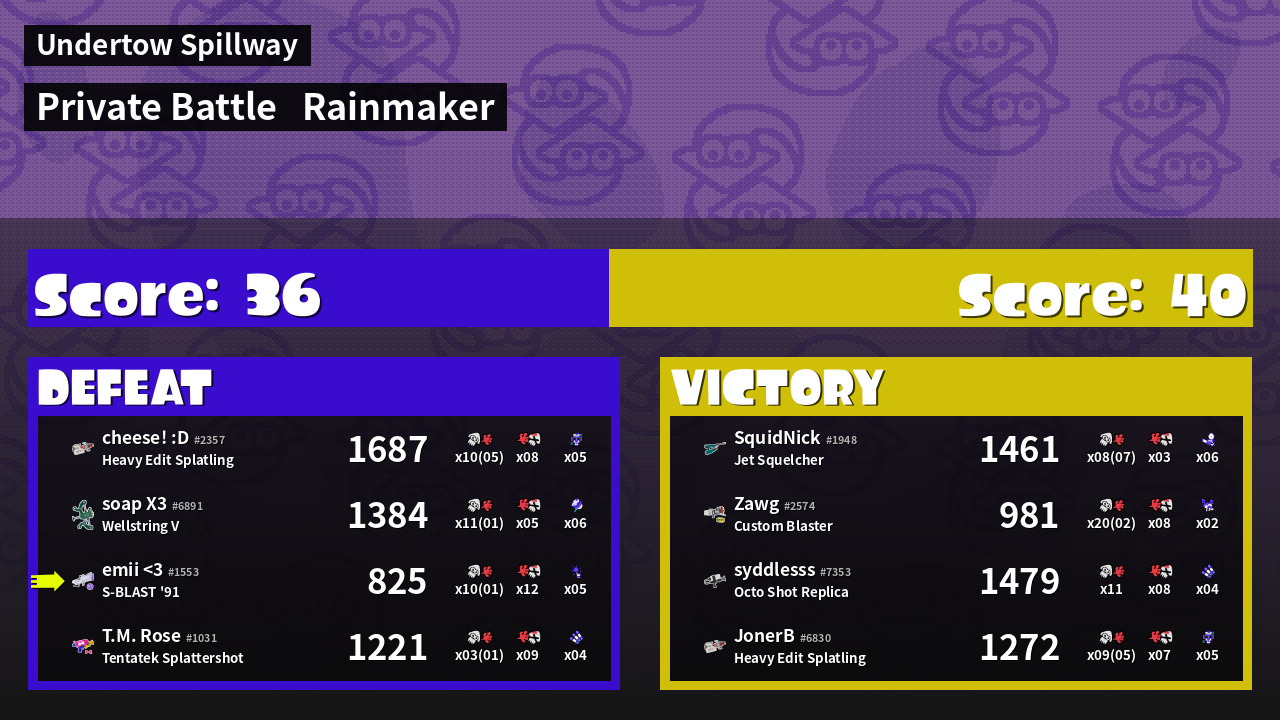 | Medals | #1 Ground Traveler #1 Booyah Bomb User #2 Overall Splatter | ||