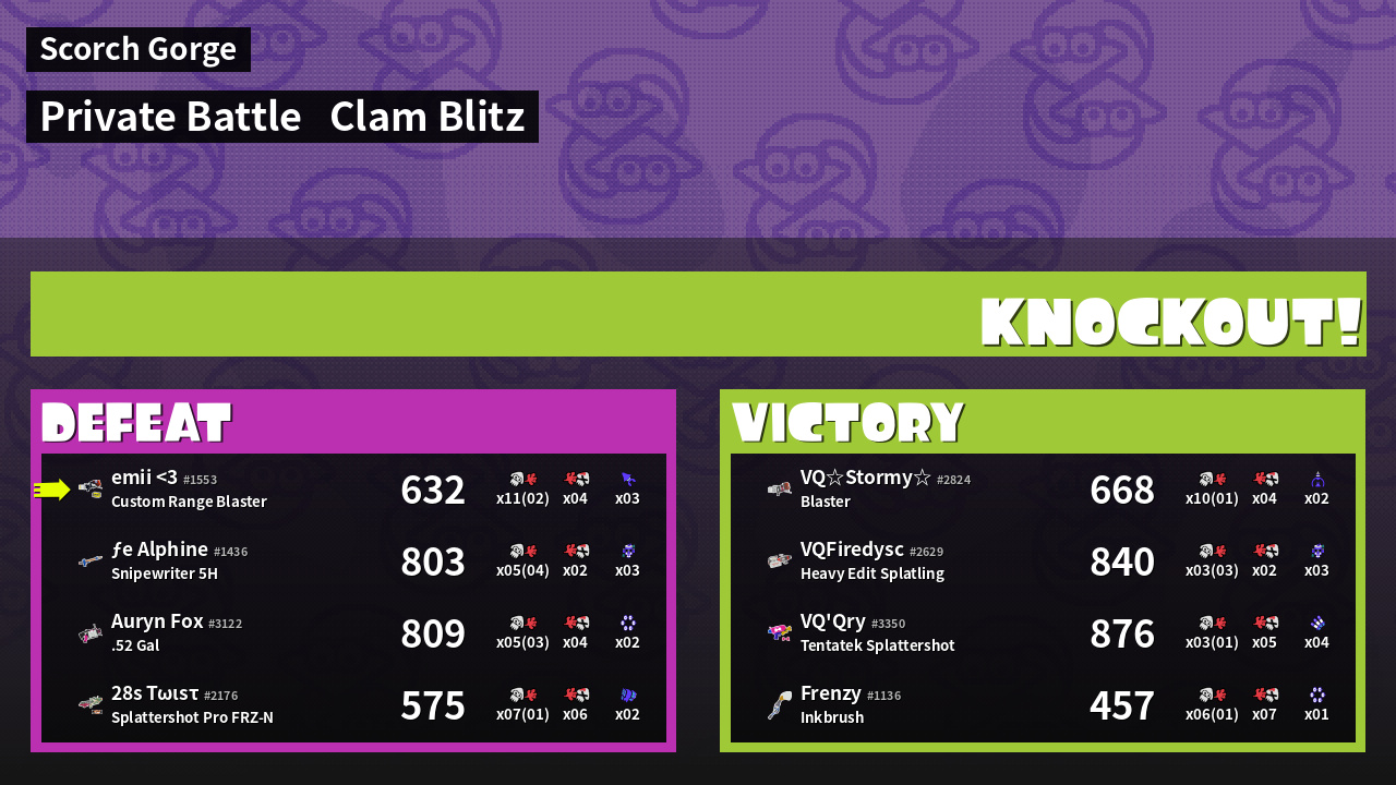 | Mode | Clam Blitz - Private Battle | ||