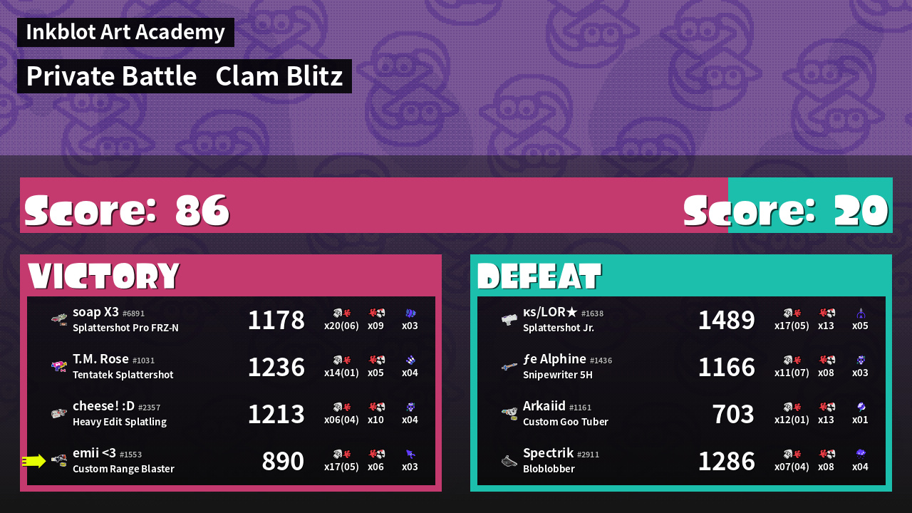 | Medals | #1 Clam Stopper First Splat! #1 Kraken Royale User | ||