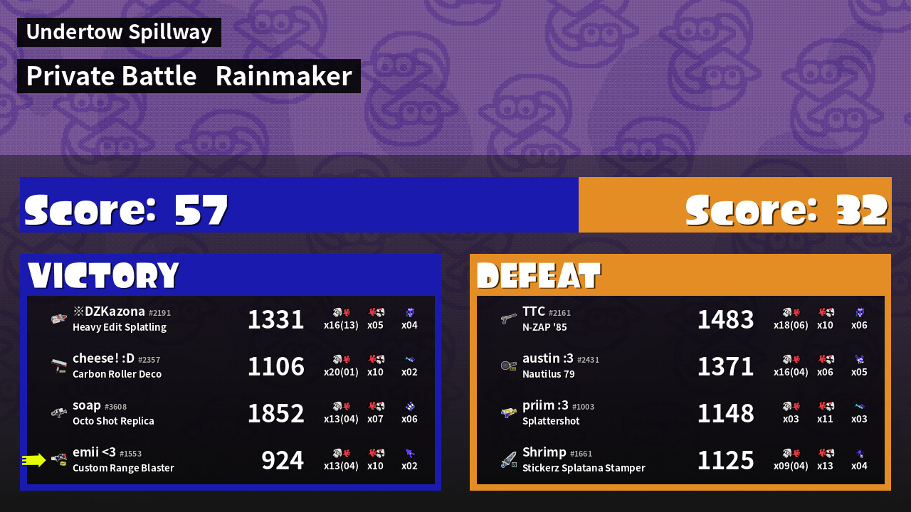 | Weapon | Custom Range Blaster ( Splat Bomb / Kraken Royale) | ||