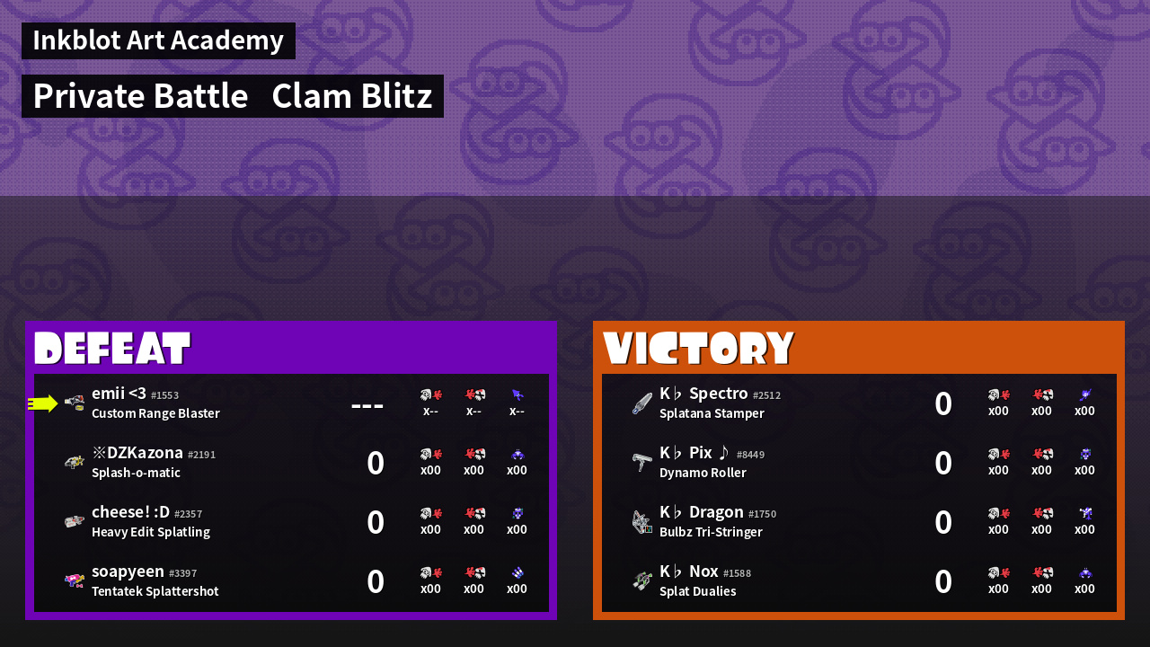 | Weapon | Custom Range Blaster ( Splat Bomb / Kraken Royale) | ||