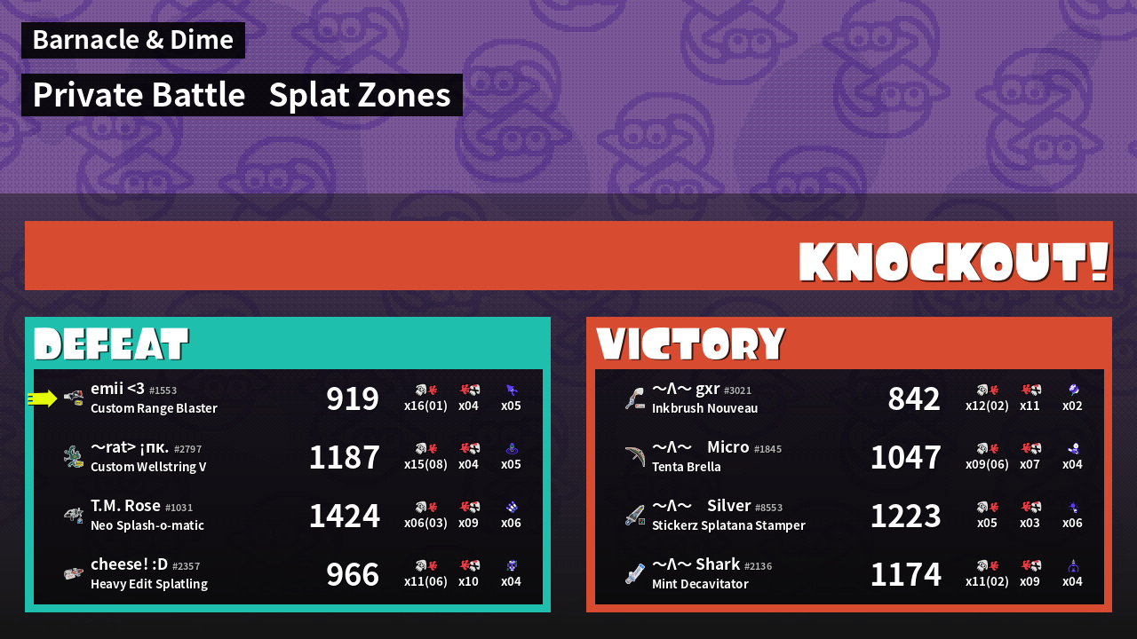 Name | Weapon | Inked | ![]() |