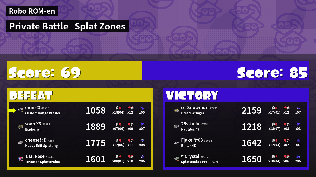 | Medals |  #1 Overall Splatter  #1 Splat Zone Guard  #1 Popular Target | ||