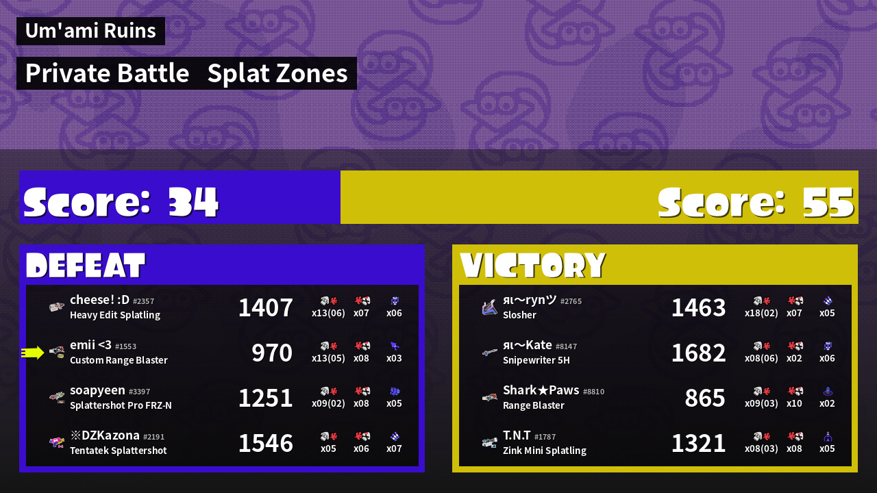 | Medals | #1 Overall Splatter #1 Splat Zone Guard #1 Popular Target | ||