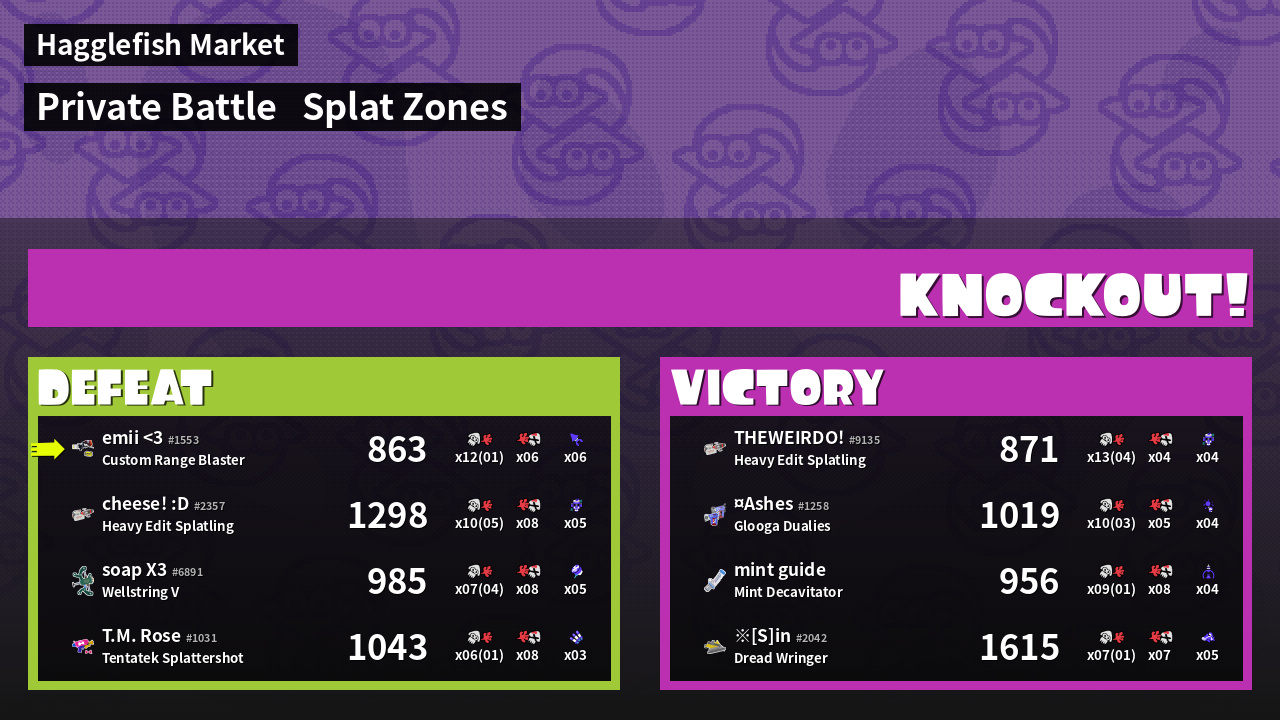| Mode | Splat Zones - Private Battle | ||