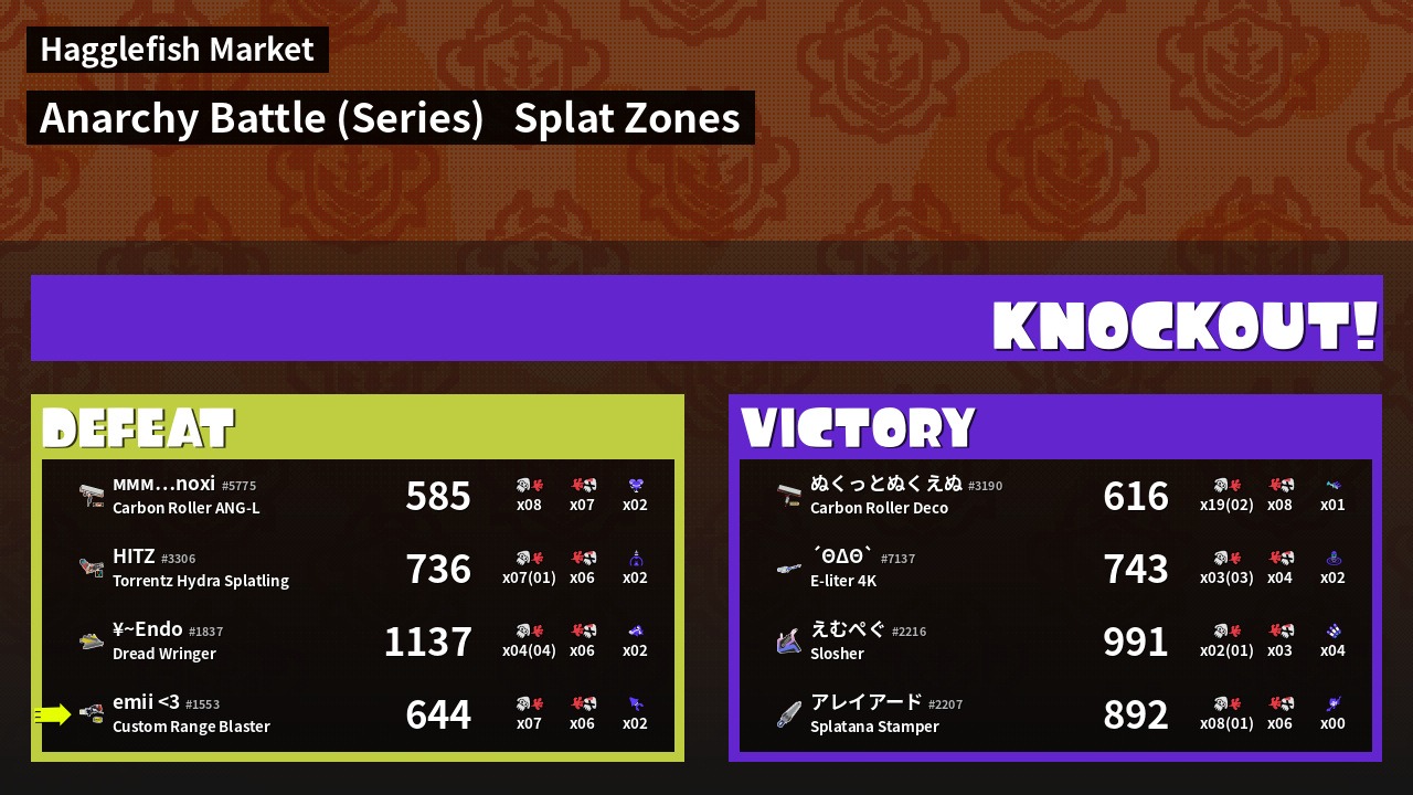 | Medals | #1 Splat Zone Guard #1 Kraken Royale User #2 Overall Splatter | ||
