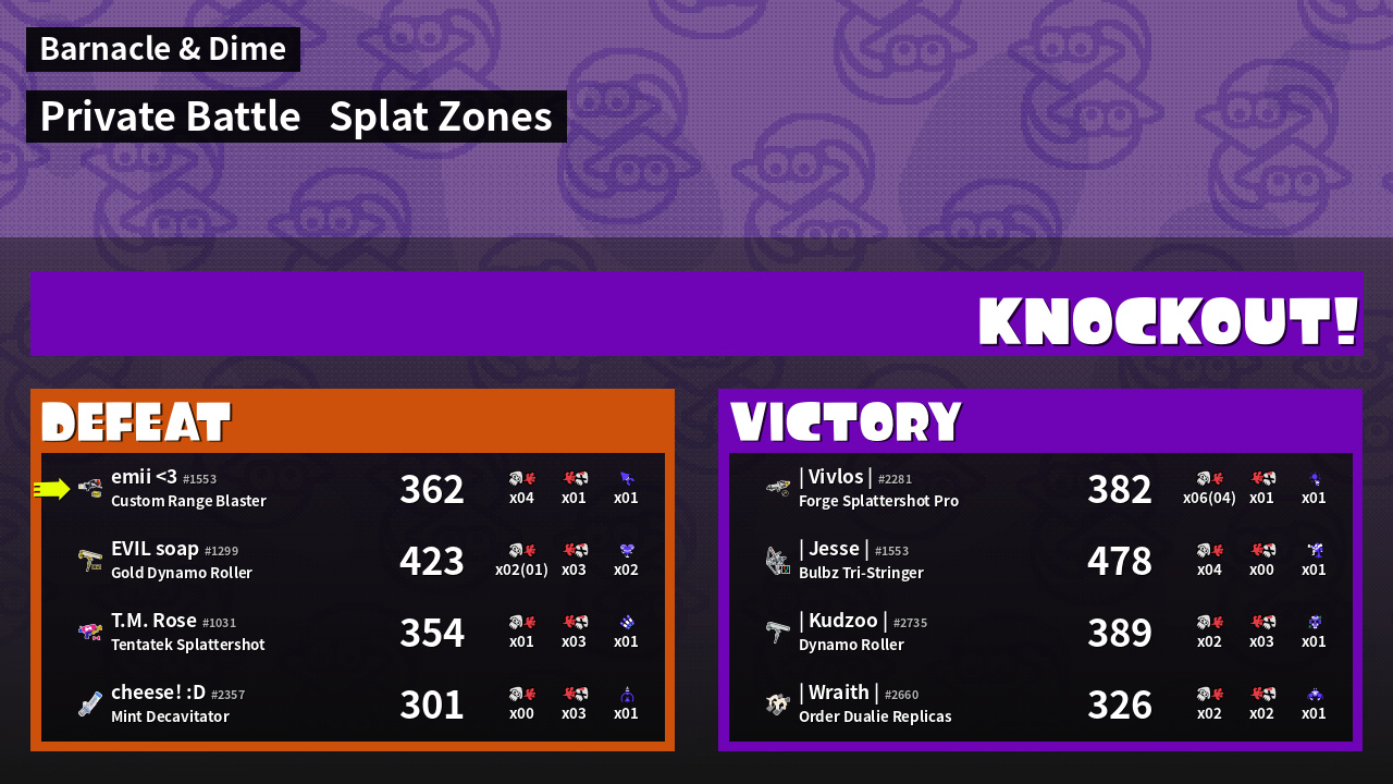 | Mode | Splat Zones - Private Battle | ||
