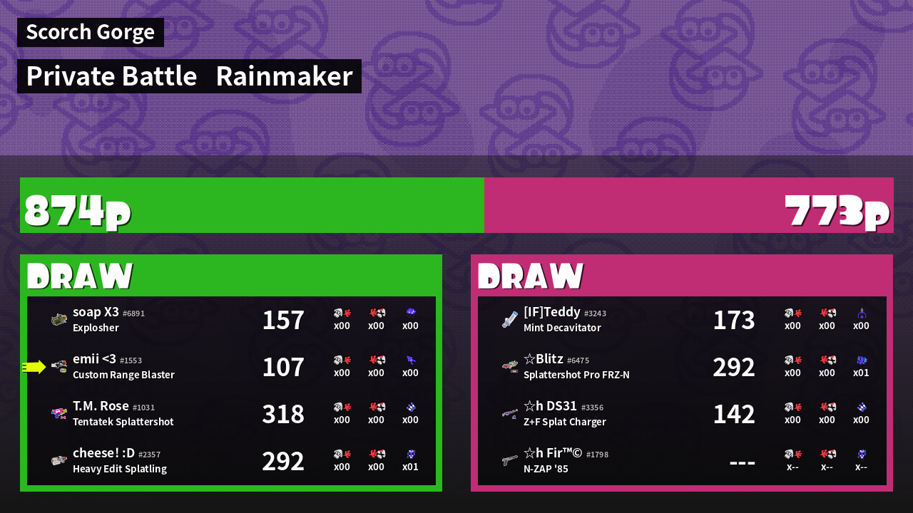 | Zesty Bro  cheese! :D #2357 |  Heavy Edit Splatling                    | 292 | 0 + 0 | 0 | 1.00 |  1 | |