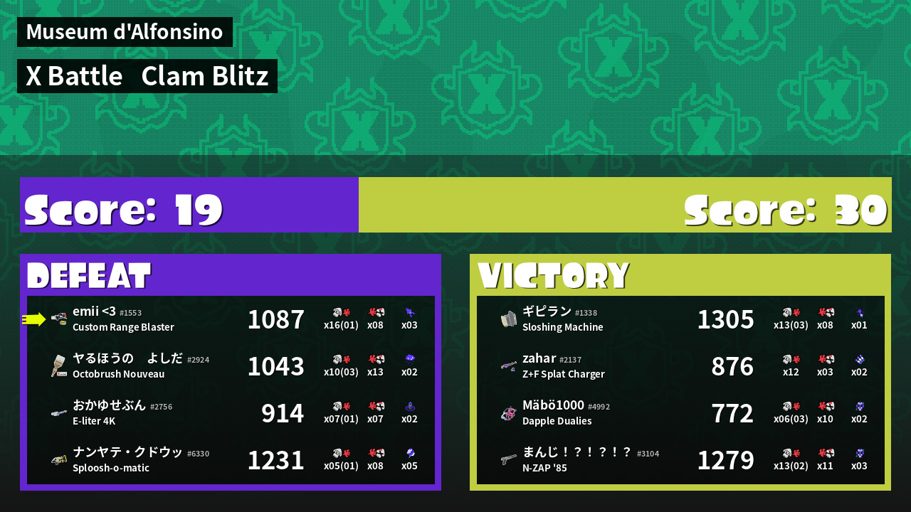 | Mode | Clam Blitz - X Battle | ||