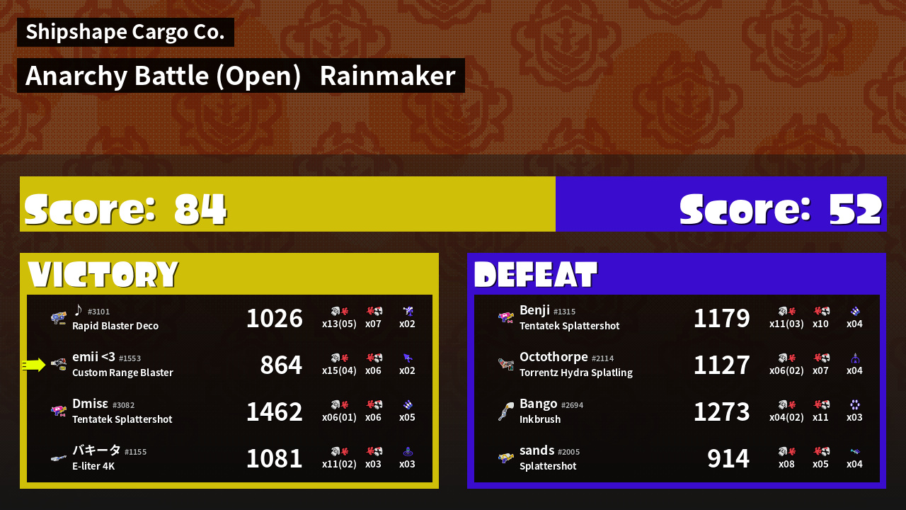 | Mode | Rainmaker - Anarchy Battle (Open) | ||