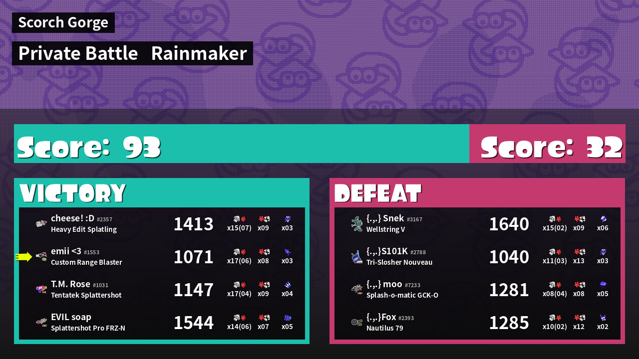 | Medals | #1 Overall Splatter #1 Popular Target #1 Ground Traveler | ||