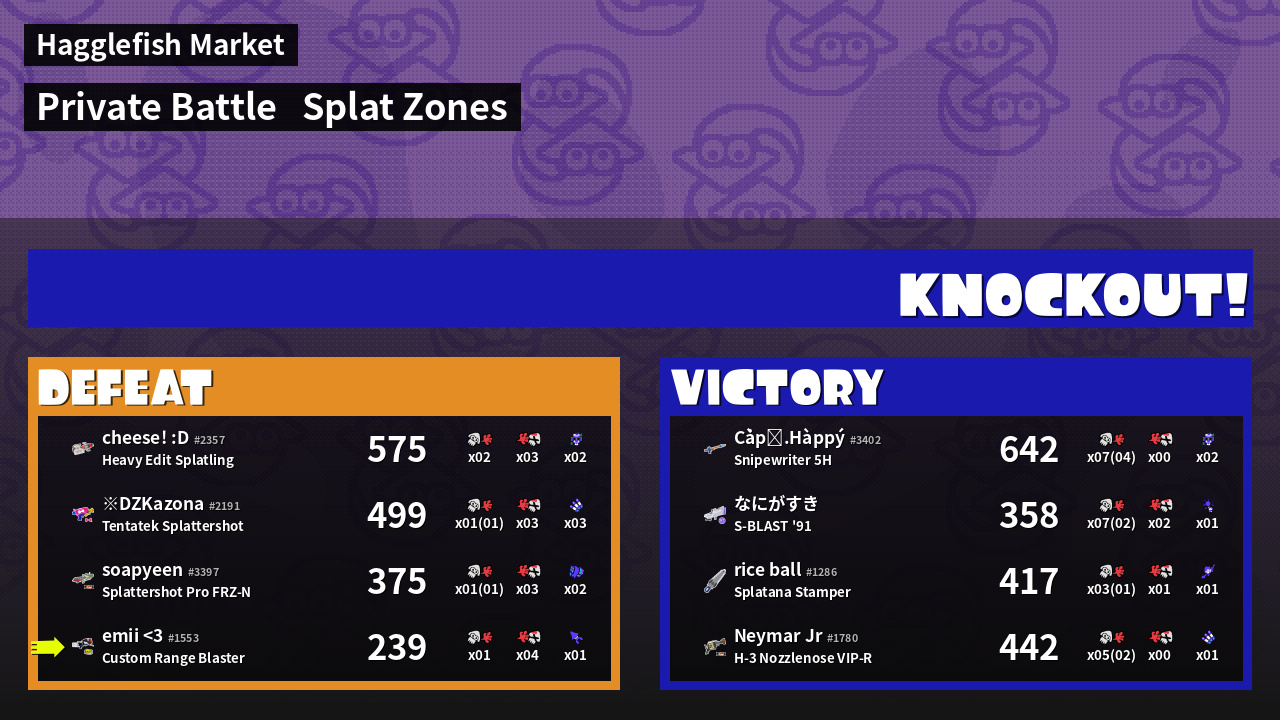 | Medals | #1 Splat Zone Inker #1 Splat Zone Hero #1 Damage Taker | ||