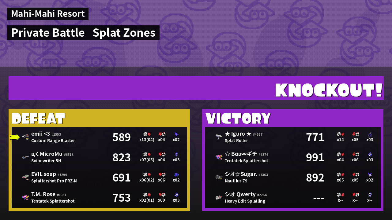 | Mode | Splat Zones - Private Battle | ||