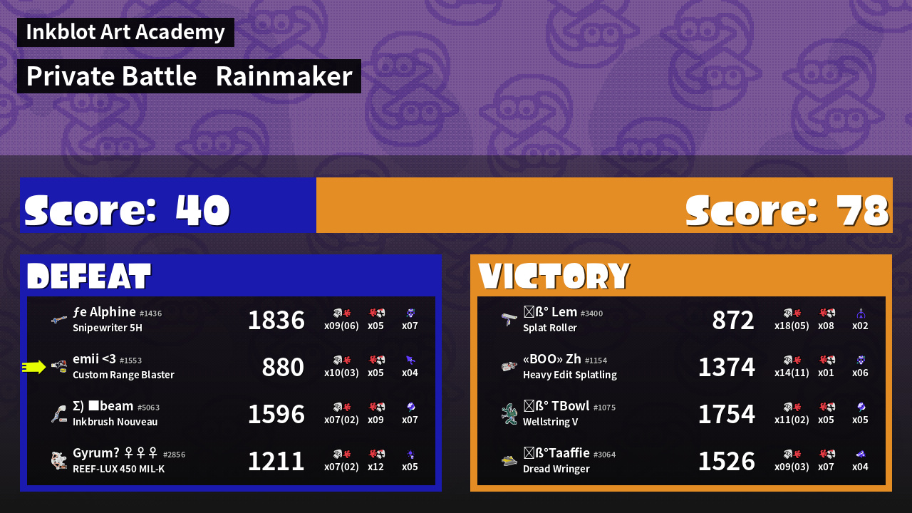 | Medals | #1 Overall Splatter #1 Enemy Splatter #1 Rainmaker Stopper | ||