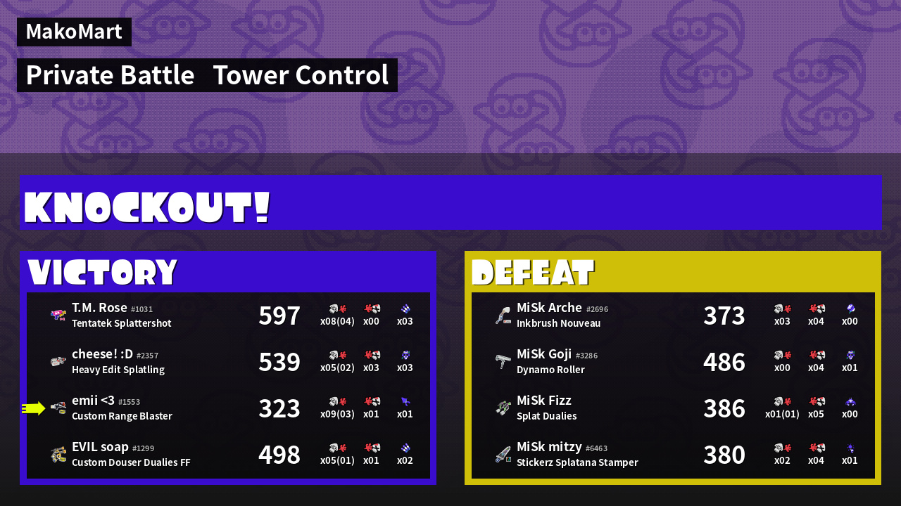 | Medals | #1 Overall Splatter #1 Enemy Splatter #1 Damage Taker | ||