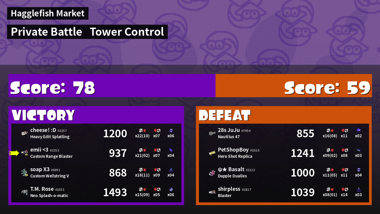 | Medals | #1 Popular Target #1 Enemy Splatter First Splat! | ||