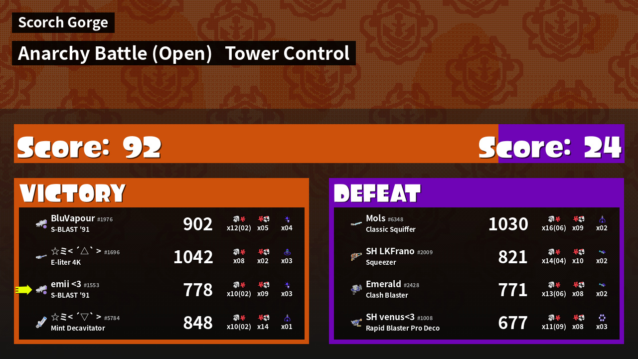 | Mode | Tower Control - Anarchy Battle (Open) | ||