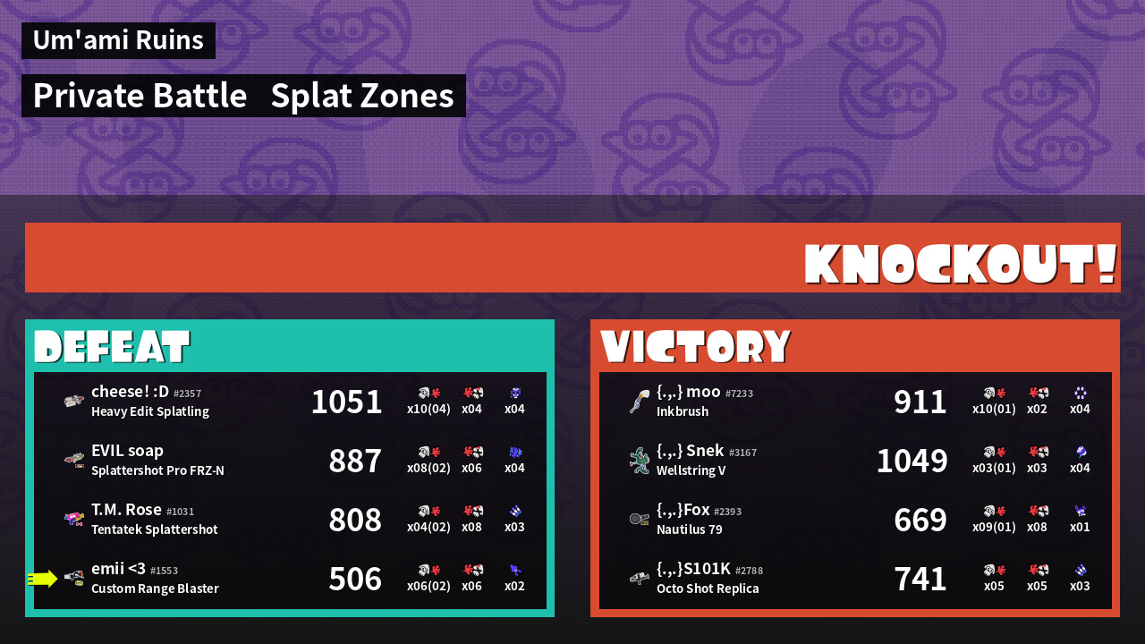 | Mode | Splat Zones - Private Battle | ||