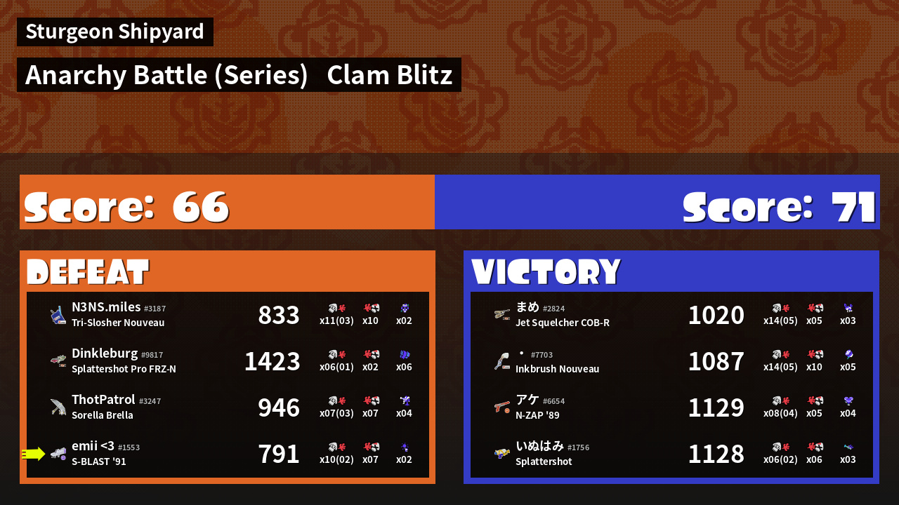 | Mode | Clam Blitz - Anarchy Battle (Series) | ||
