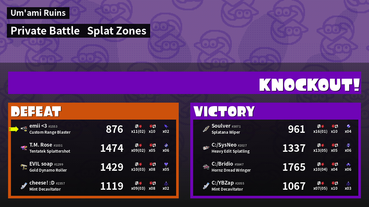 | Medals | #1 Overall Splatter #1 Splat Zone Guard #1 Popular Target | ||
