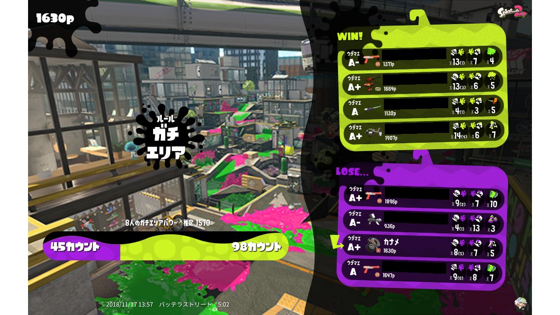 | Mode | Splat Zones - Ranked Battle | ||||||||||||||||||||||||||||||||||