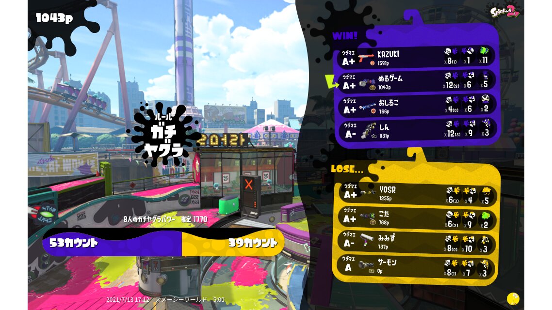 | Name | Weapon | Level | Rank | Inked | k+a/sp | k/d |