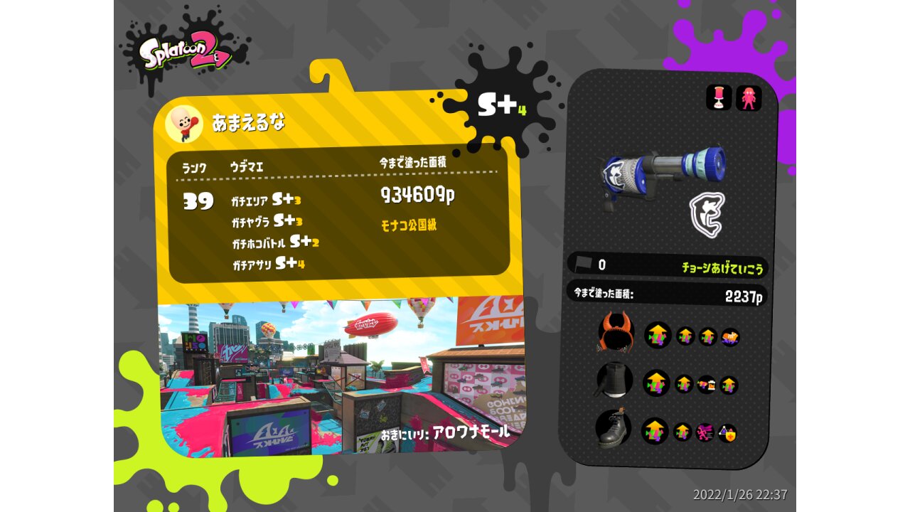 | Name | Weapon | Level | Rank | Inked | k+a/sp | k/d |