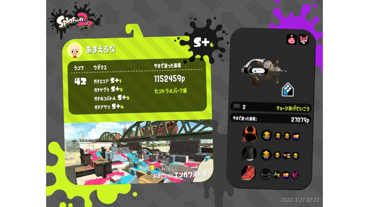 | Name | Weapon | Level | Rank | Inked | k+a/sp | k/d |