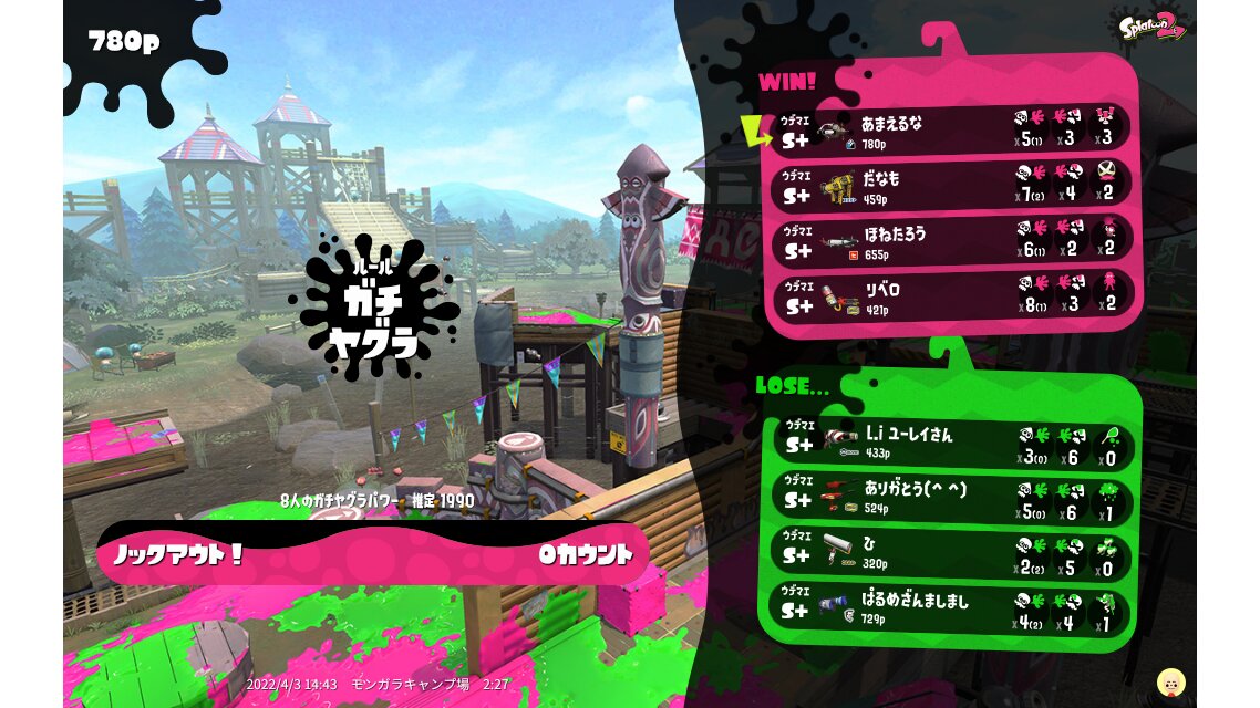 | Name | Weapon | Level | Rank | Inked | k+a/sp | k/d |