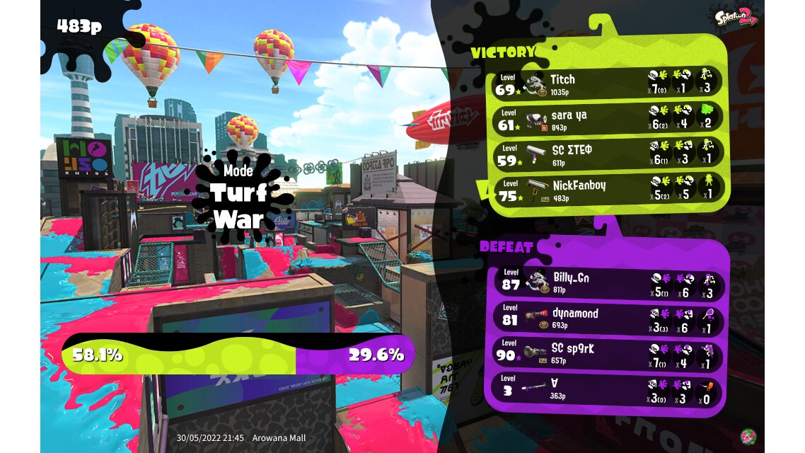 | Mode | Turf War - Regular Battle | |||||||||||||||||||||||||||||||||||||