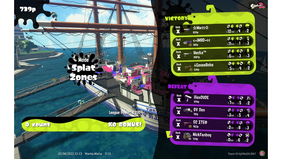 | Mode | Splat Zones - League Battle (Quad) | |||||||||||||||||||||||||||||||||||||