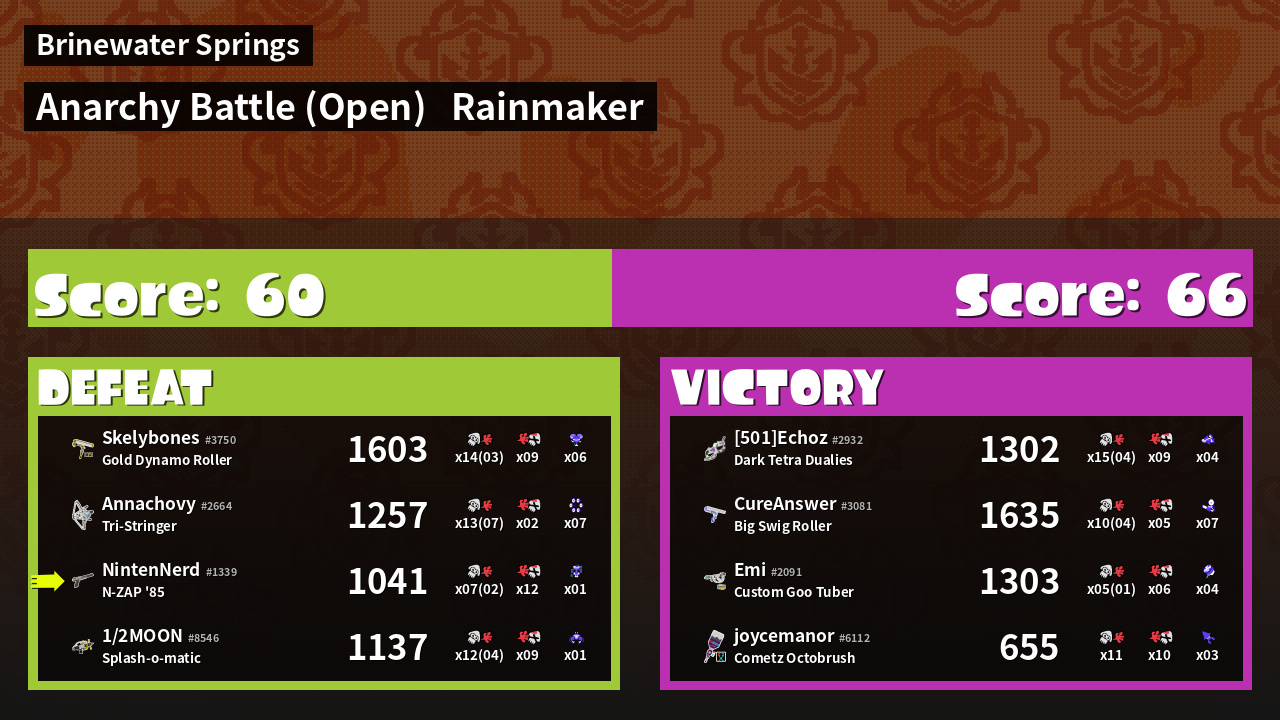 | Mode | Rainmaker - Anarchy Battle (Open) | ||