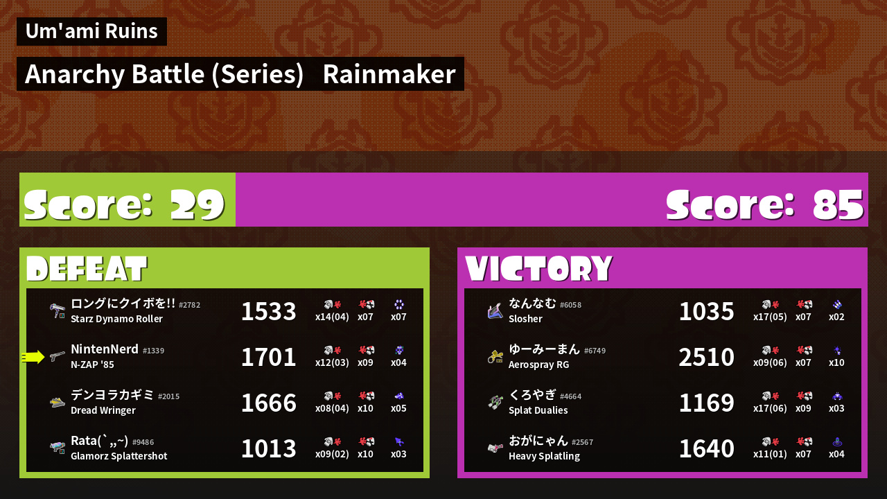 | Mode | Rainmaker - Anarchy Battle (Series) | ||
