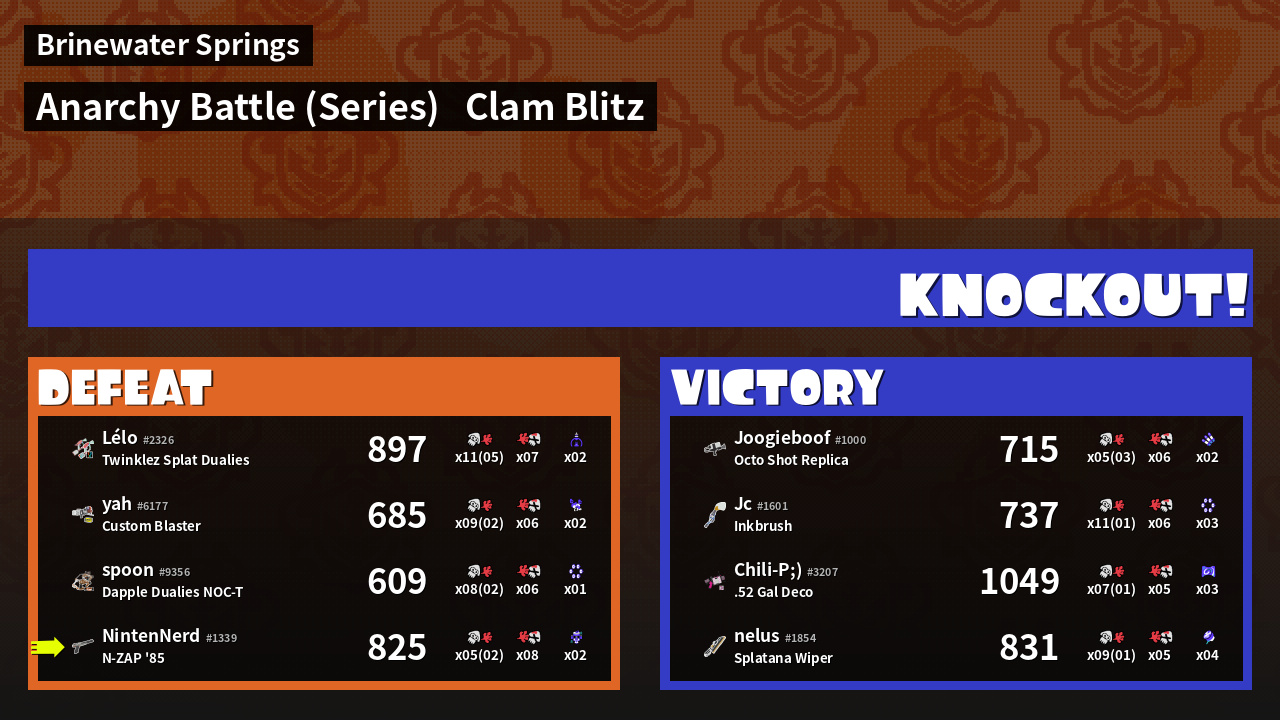 | Mode | Clam Blitz - Anarchy Battle (Series) | ||