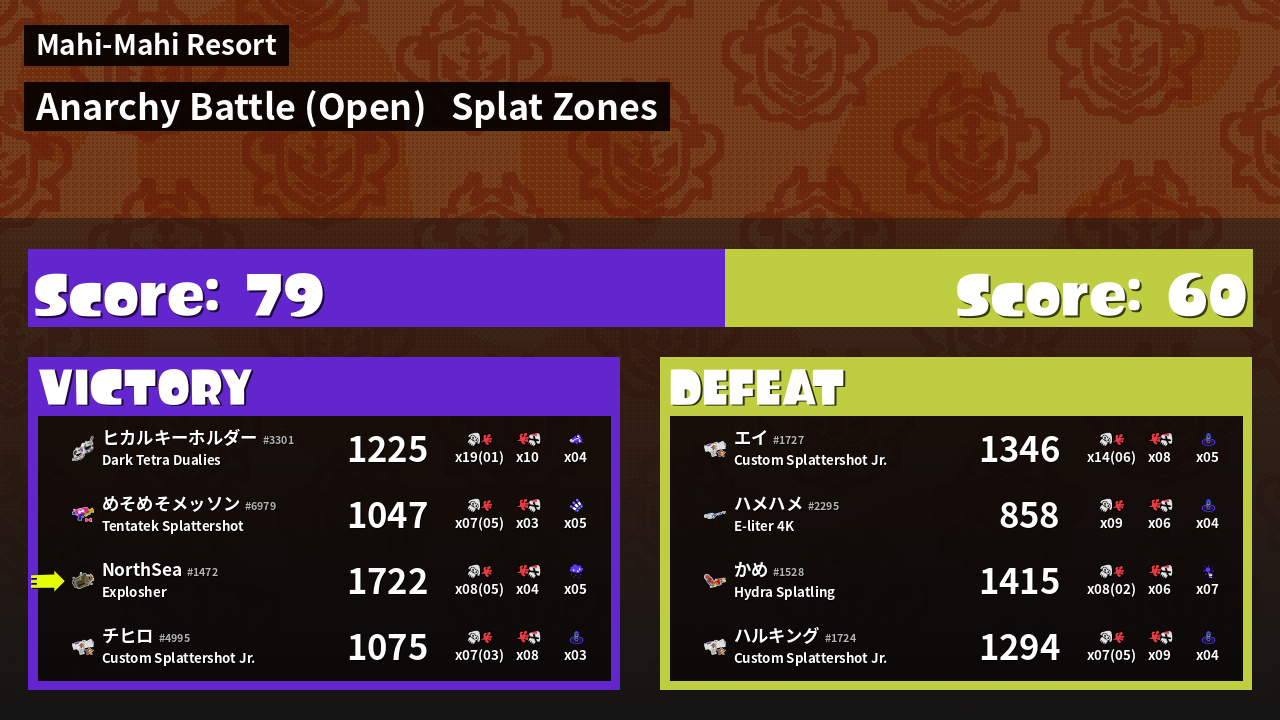 | Mode | Splat Zones - Anarchy Battle (Open) | ||